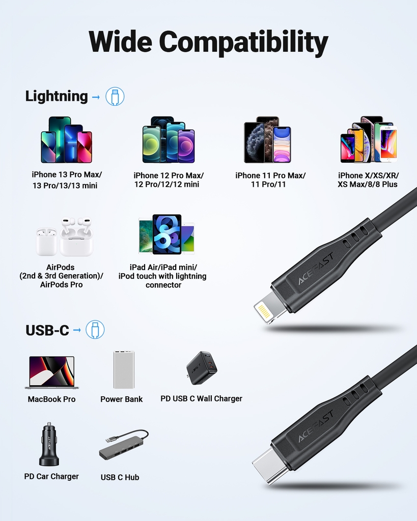 ✨Cáp Acefast USB-C to Light.ning dài 0.3m - DC3-01 Hàng chính hãng Acefast