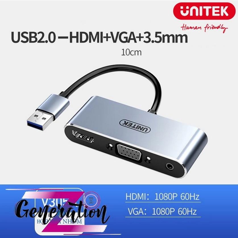 ✨CÁP CHUYỂN ĐỔI TỪ CỔNG USB RA CÁC CỔNG HDMI / VGA / DC 3.5 AUDIO V305A UNITEK - HÀNG CHÍNH HÃNG