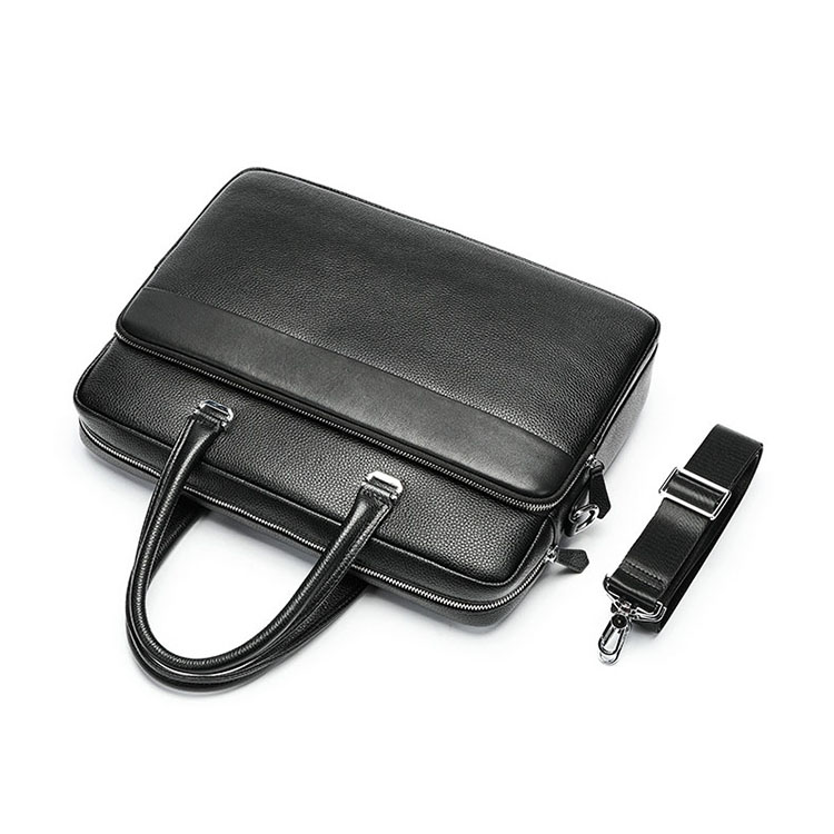 Cặp công sở nam da bò BHM9660 với màu đen lịch lãm, kiểu dáng đơn giản mà vẫn sang khi đeo vai hoặc cầm trên tay.