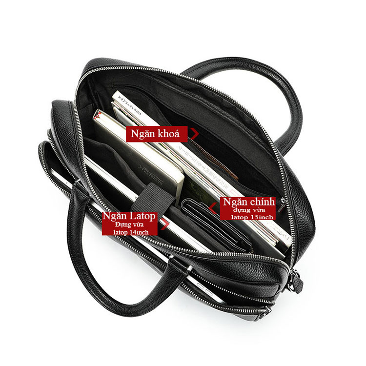 Cặp da công sở TCA25 có ngăn chính lớn, đựng vừa tài liệu khổ A4, máy tính xách tay 13 inch. Bên cạnh đó, cặp có nhiều ngăn phụ để bạn sắp xếp đồ đạc
