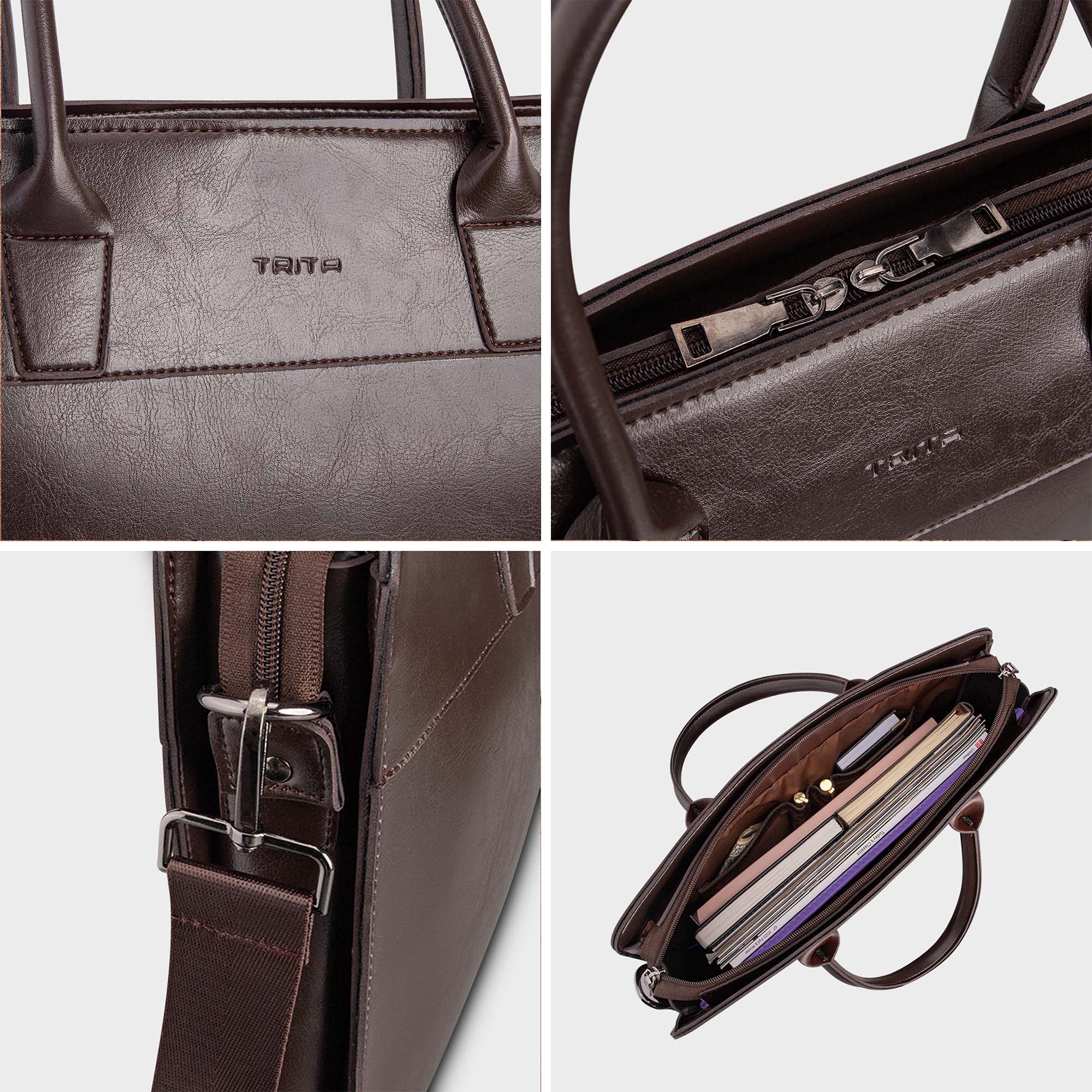 Cặp da công sở TCA25 có ngăn chính lớn, đựng vừa tài liệu khổ A4, máy tính xách tay 13 inch. Bên cạnh đó, cặp có nhiều ngăn phụ để bạn sắp xếp đồ đạc