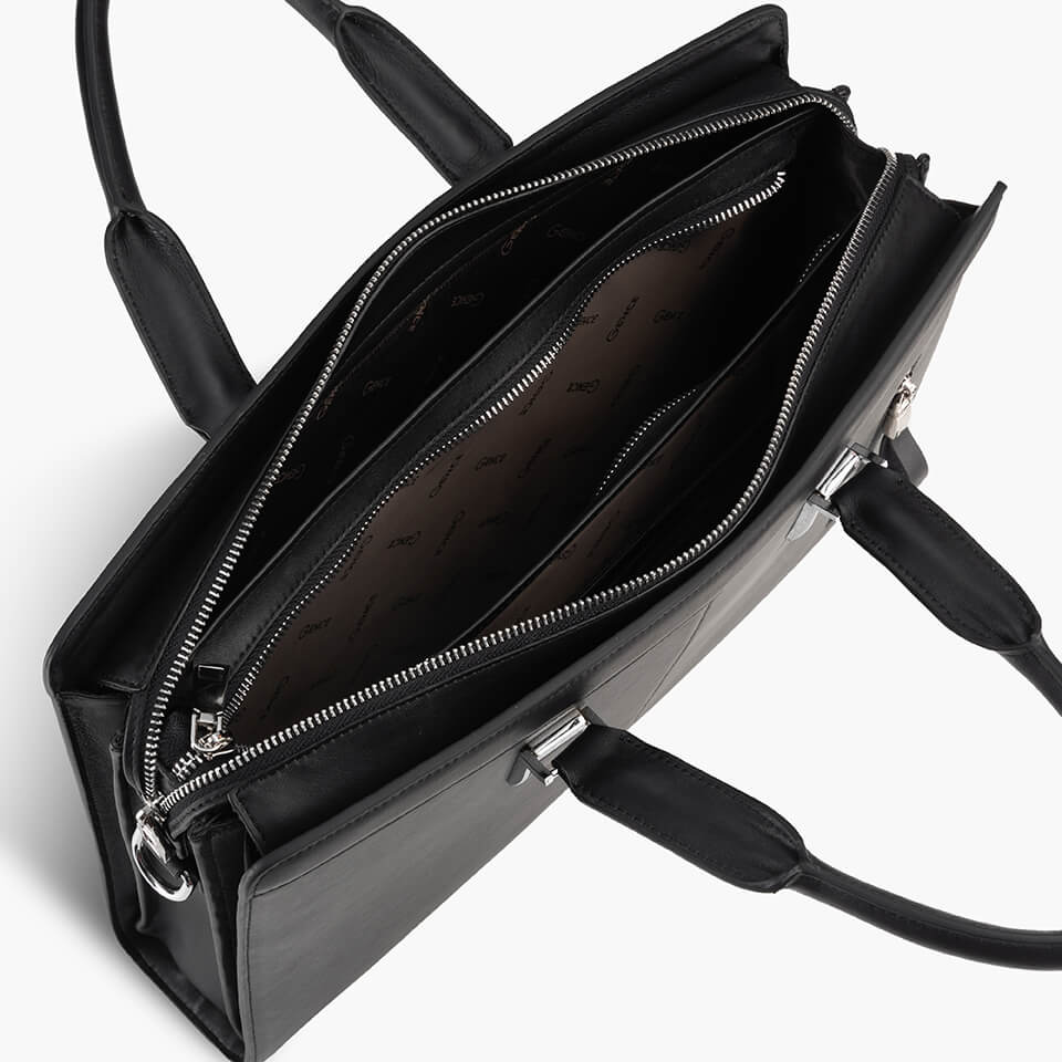 Cặp da công sở TCA25 có ngăn chính lớn, đựng vừa tài liệu khổ A4, máy tính xách tay 13 inch. Bên cạnh đó, cặp có nhiều ngăn phụ để bạn sắp xếp đồ đạc