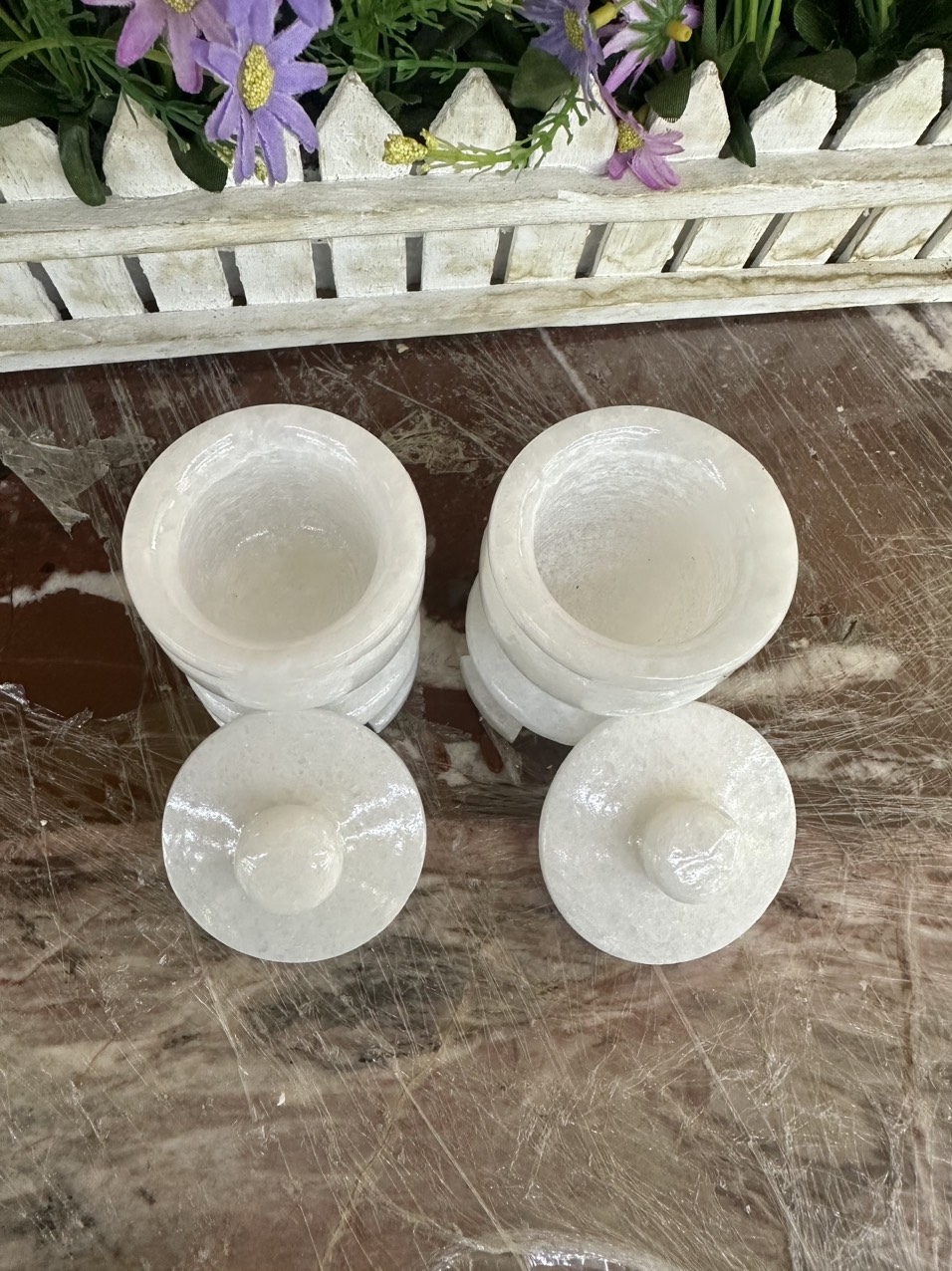 ✨Cặp hũ đựng muối, gạo thờ cúng đặt bàn thờ ông thần tài thổ địa đá cẩm thạch trắng