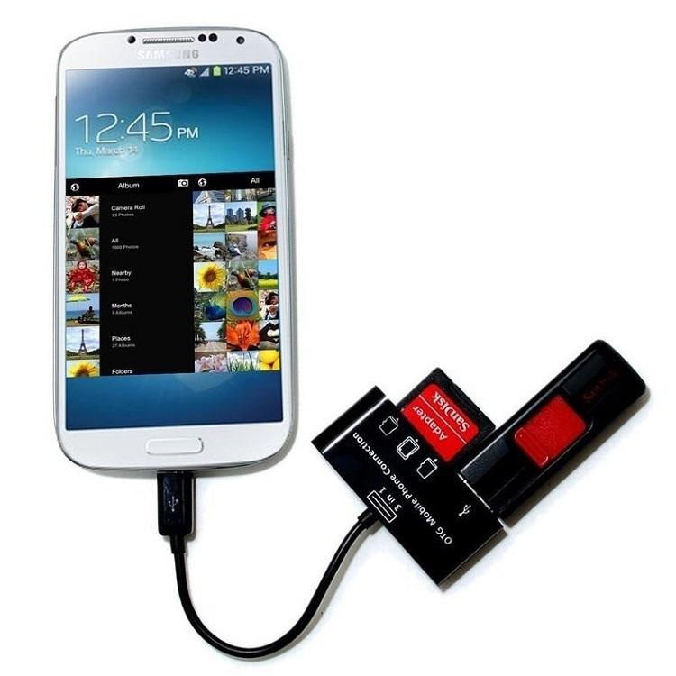 Cáp OTG đọc thẻ 3 in 1 cho Điện thoại cổng Micro USB