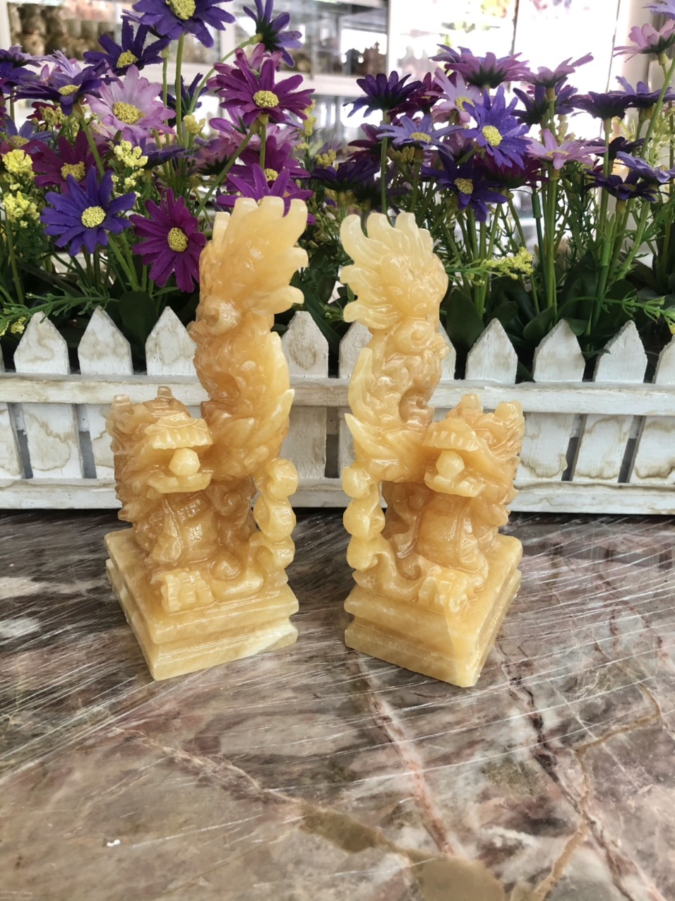 ✨Cặp Rồng đứng phong thủy đá ngọc hoàng long - Cao 15 cm