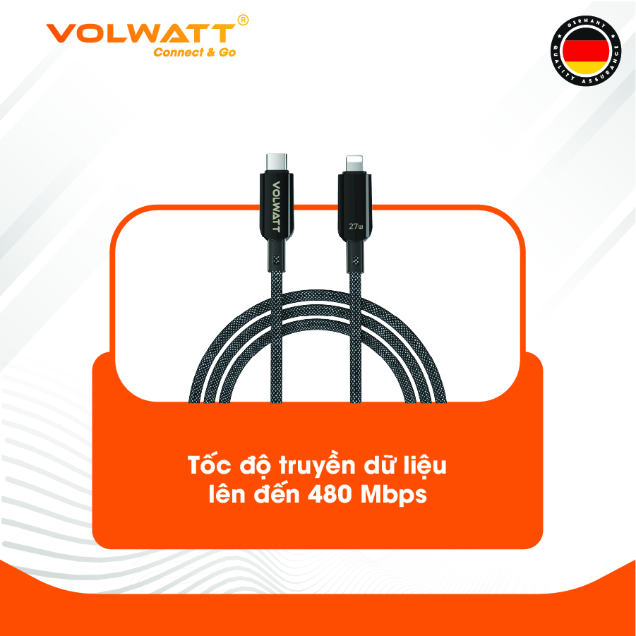 Cáp sạc nhanh Volwatt GE-A35-CL – Chuẩn PD 27W, có LED hiển thị công suất Là lựa chọn tối ưu cho người dùng cần tốc độ sạc nhanh, an toàn và tiện lợi. Sản phẩm