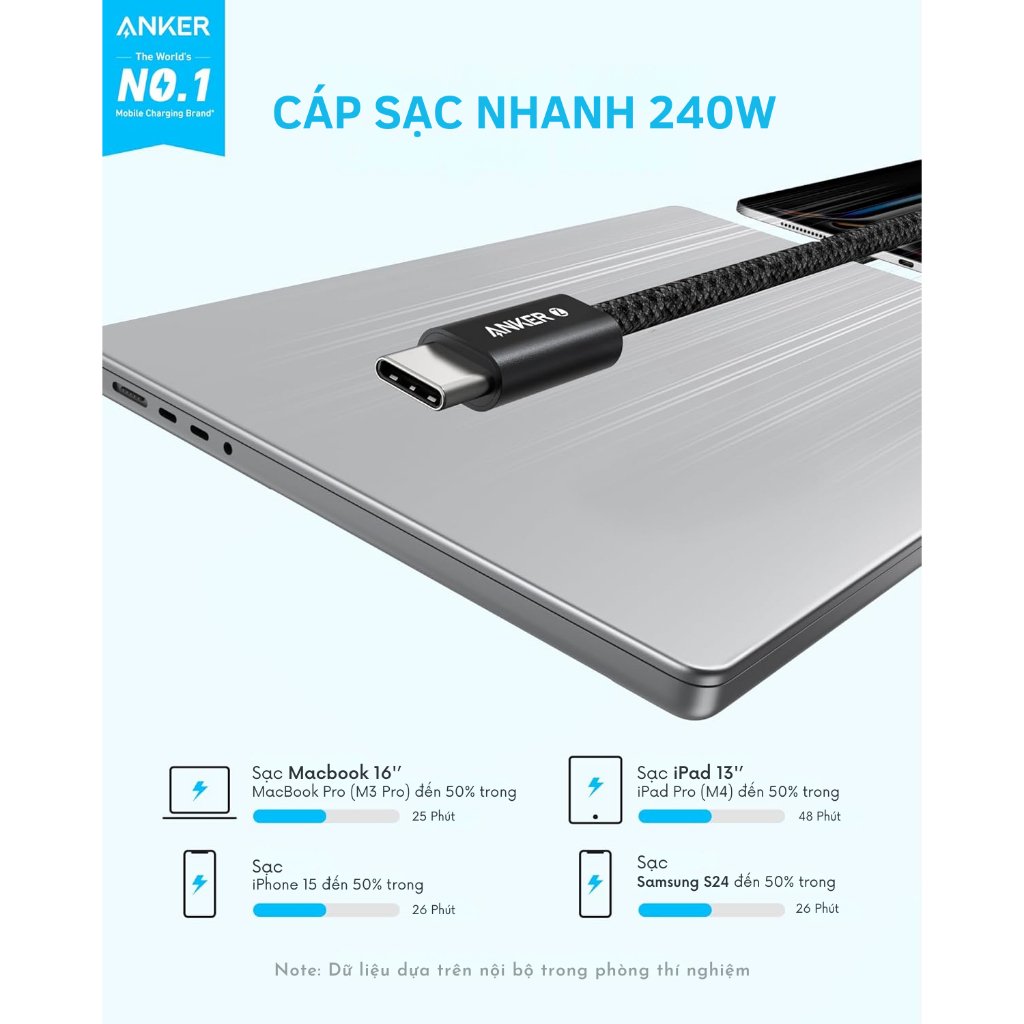 Tính năng Cáp Sạc Nhanh C to C ANKER Zolo A8060 240W (1m, 480Mbps, Nylon Braided)