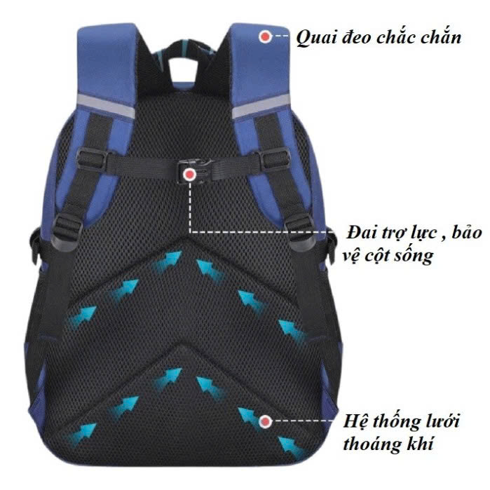 Chống gù lưng hiệu quả – hỗ trợ giữ tư thế đúng, bảo vệ cột sống khi bé mang sách vở nặng.