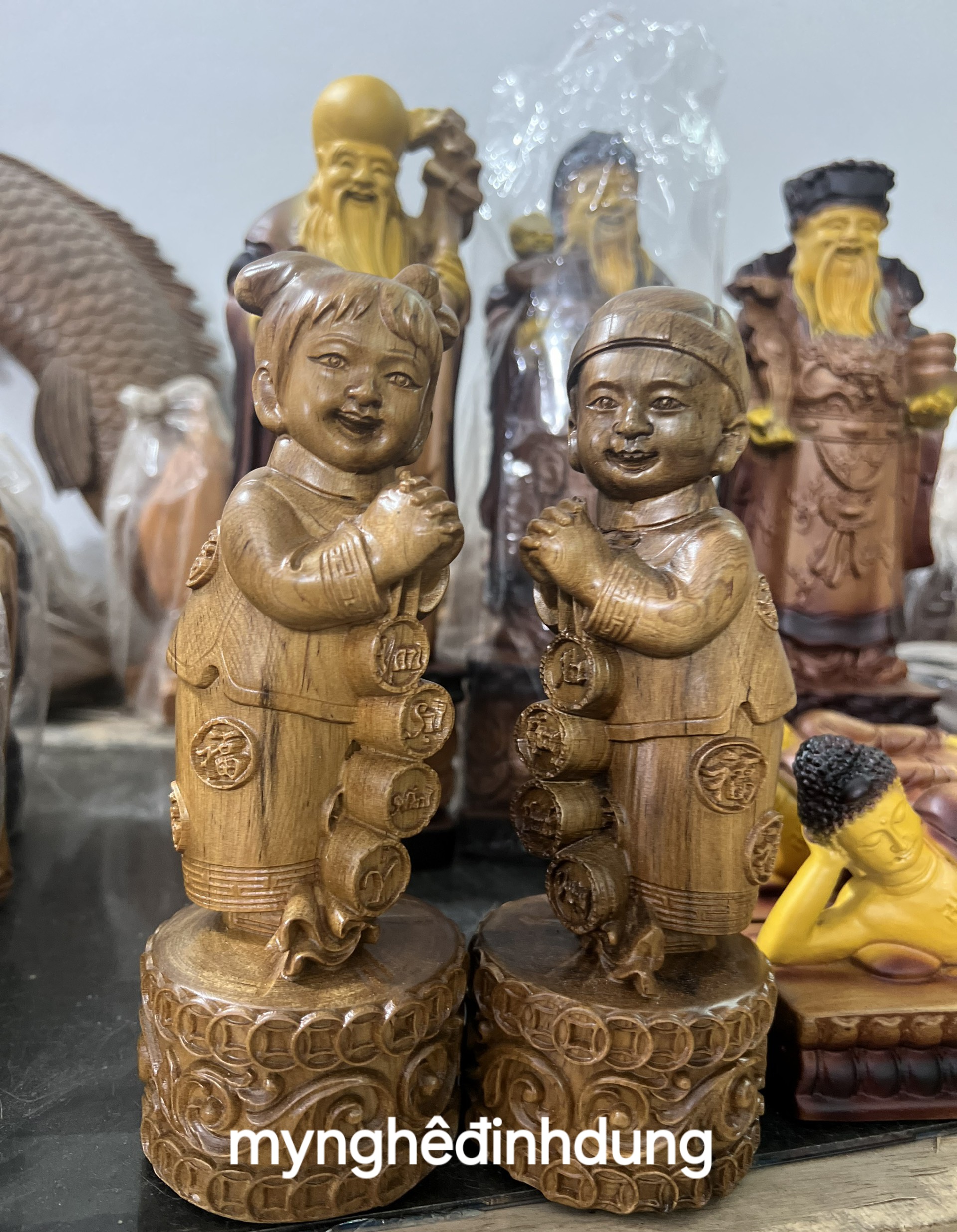 ✨Cặp tiểu đồng chúc phúc bằng gỗ bách xanh thơm nức cao 20x8x8cm