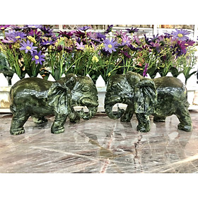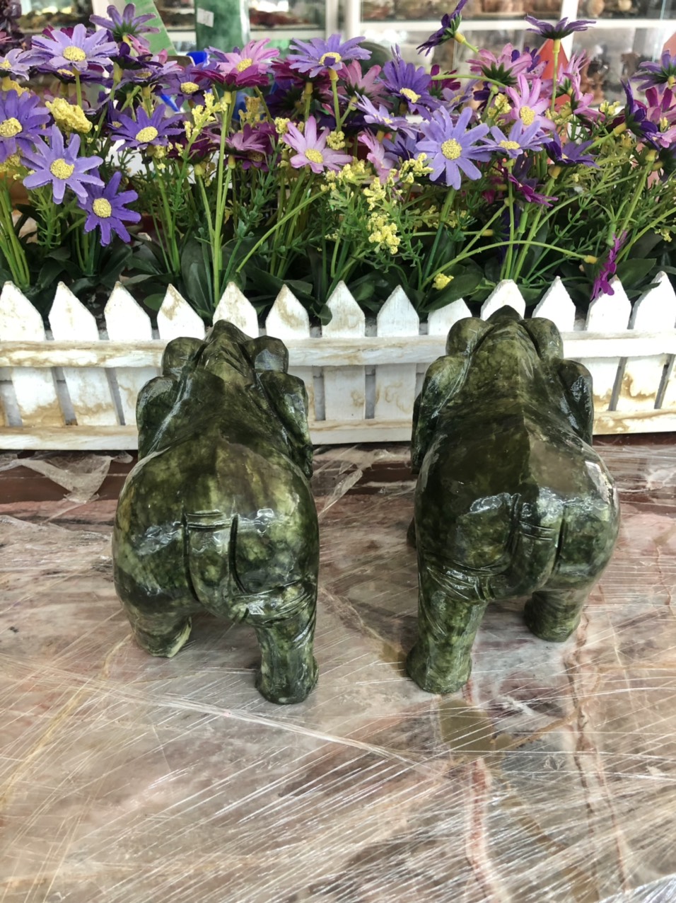 ✨Cặp tượng con voi phong thủy đá ngọc Ấn Độ - Dài 15 cm
