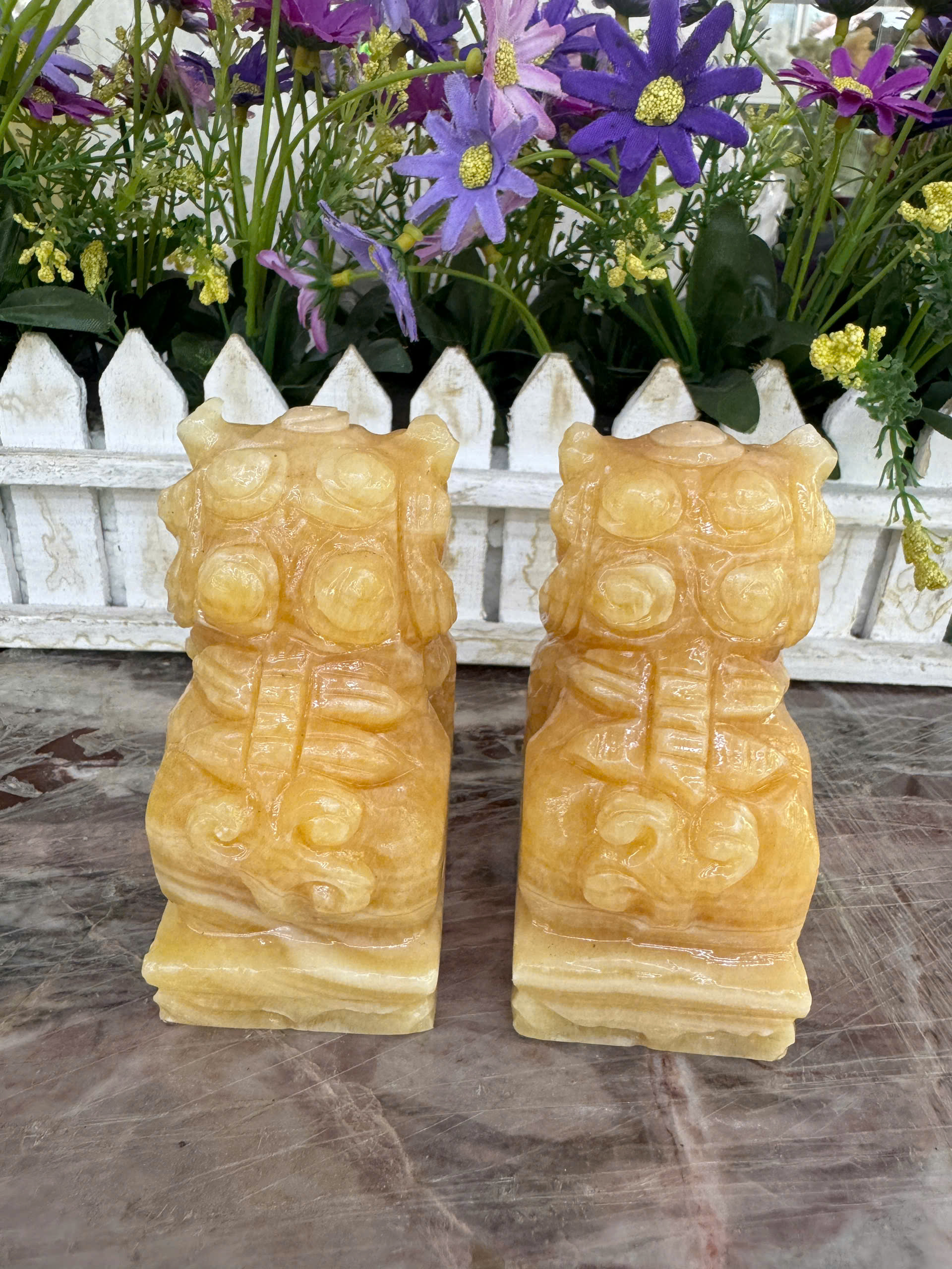 Hợp mệnh Thổ - Kim Chất liệu: Đá cẩm thạch vàng cà rốt Kích thước: Dài 15 cm X Rộng 6 cm x Cao 12,5 cm Khối lượng: 3,2 kg / cặp Ý nghĩa Tỳ