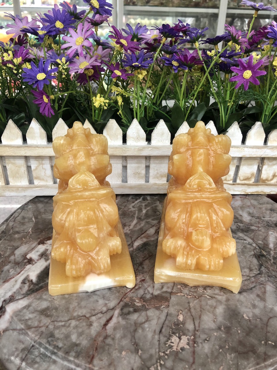 Hợp mệnh Thổ - Kim Chất liệu: Đá cẩm thạch vàng cà rốt Kích thước: Dài 15 cm X Rộng 6 cm x Cao 12,5 cm Khối lượng: 3,2 kg / cặp Ý nghĩa Tỳ