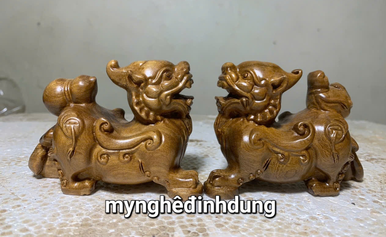 ✨Cặp tỳ hưu phong thủy hút tài lộc bằng gỗ bách xanh thơm nức kt 10x7x5cm