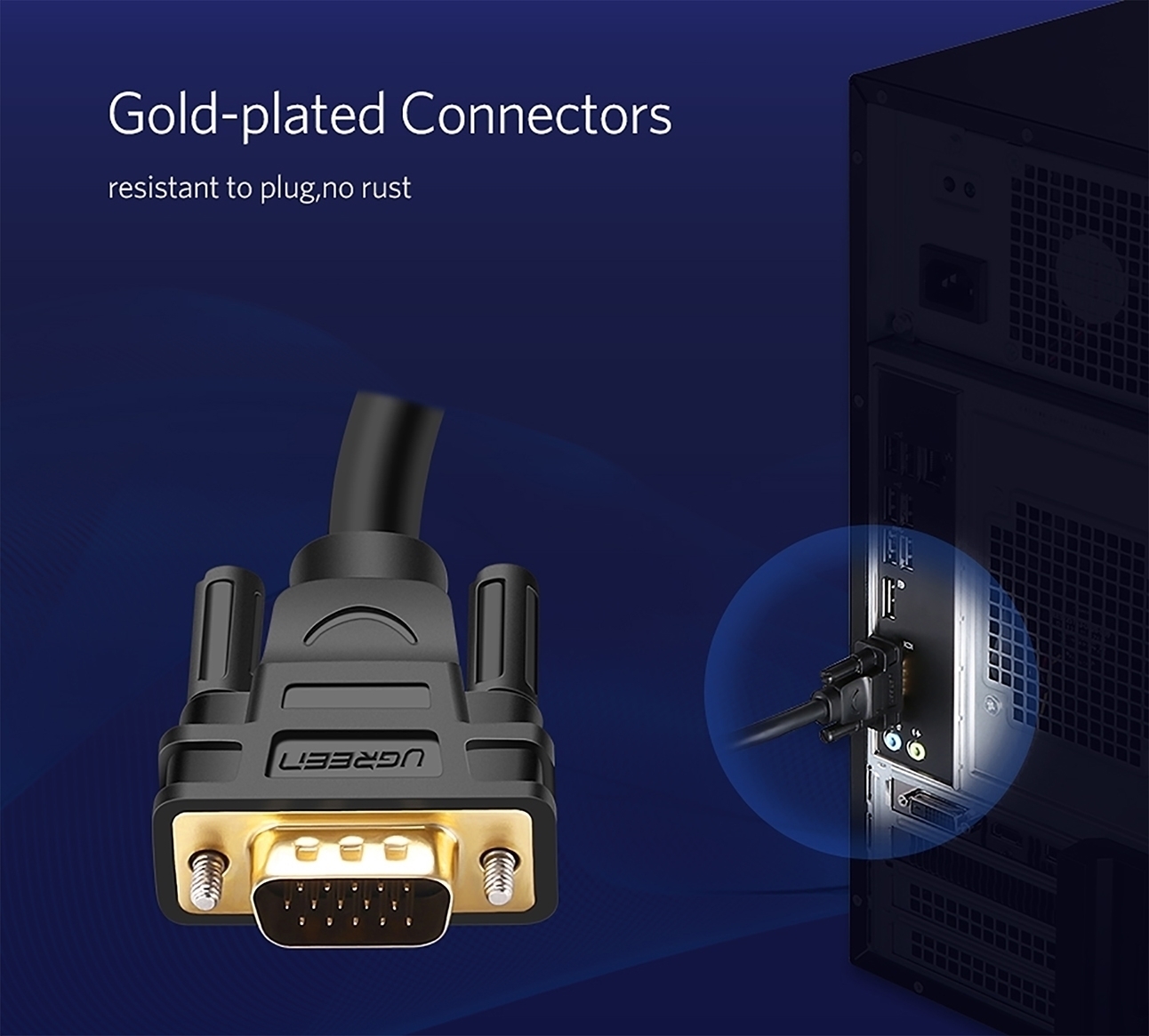 Ugreen 11673 dùng từ Máy tính PC, laptop sang màn hình hoặc máy chiếu. Dây VGA Ugreen được dùng nhiều trong trường học, ngân hàng, văn phòng truyền hình yêu cầu chất lượng tốt.