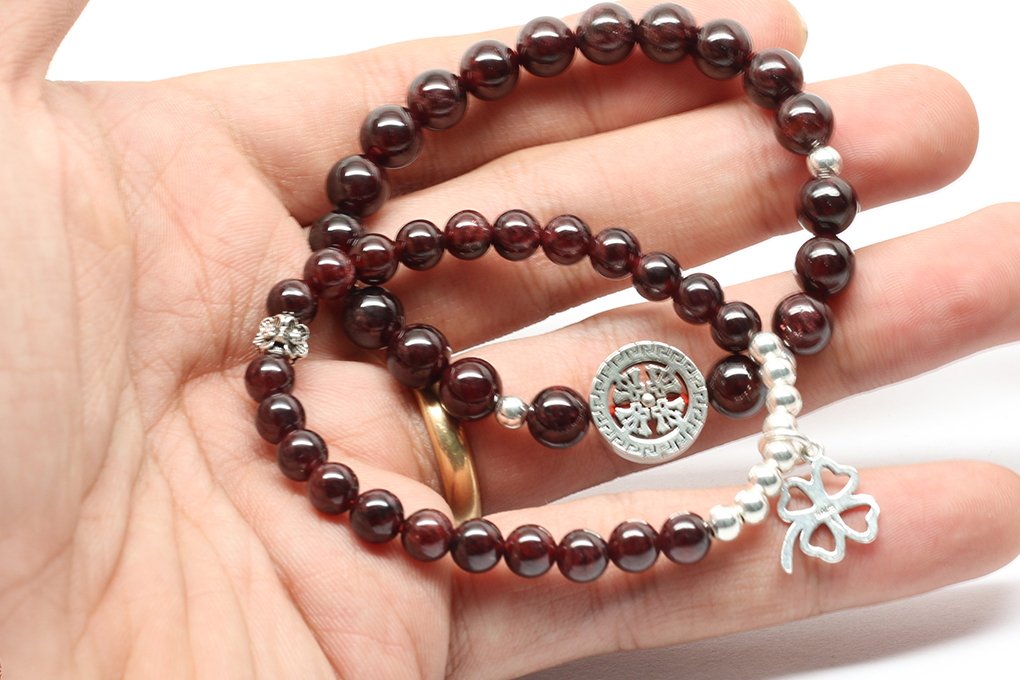 ✨Cặp Vòng Garnet Ngọc Hồng Lựu (6mm) Mix Charm Bạc Ngọc Quý Gemstones VT76