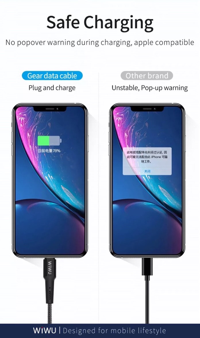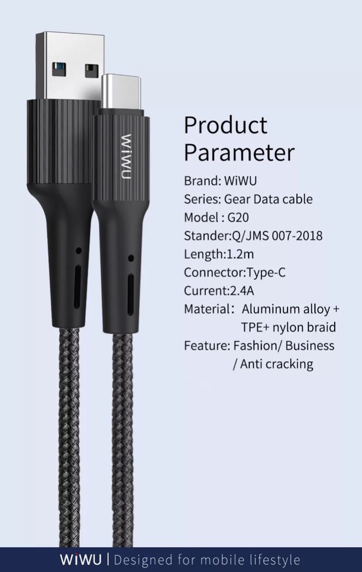 ✨Cáp Wiwu Gear Charging & Sync Cable 2.4A 1.2M G20 cho các thiết bị sạc Type-C, hỗ trợ sạc nhanh, chống rối - Hàng chính hãng