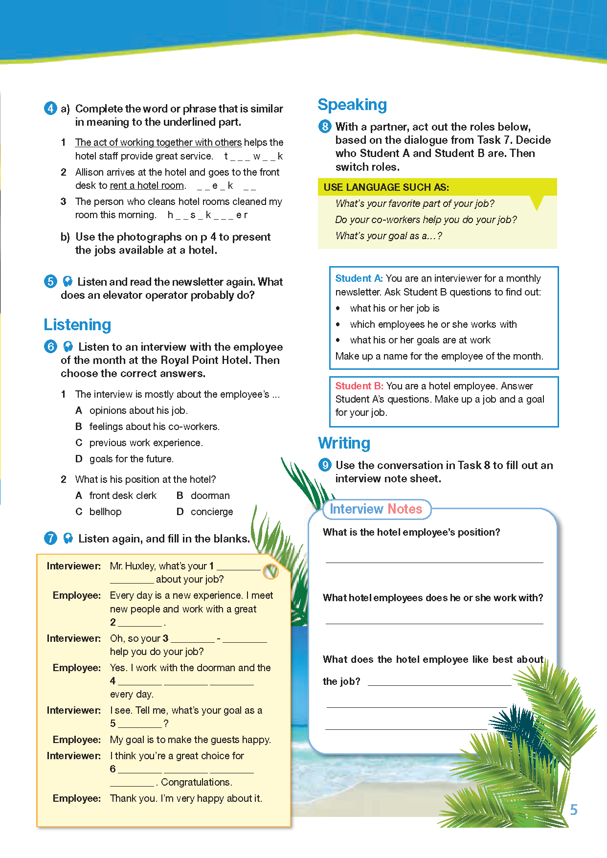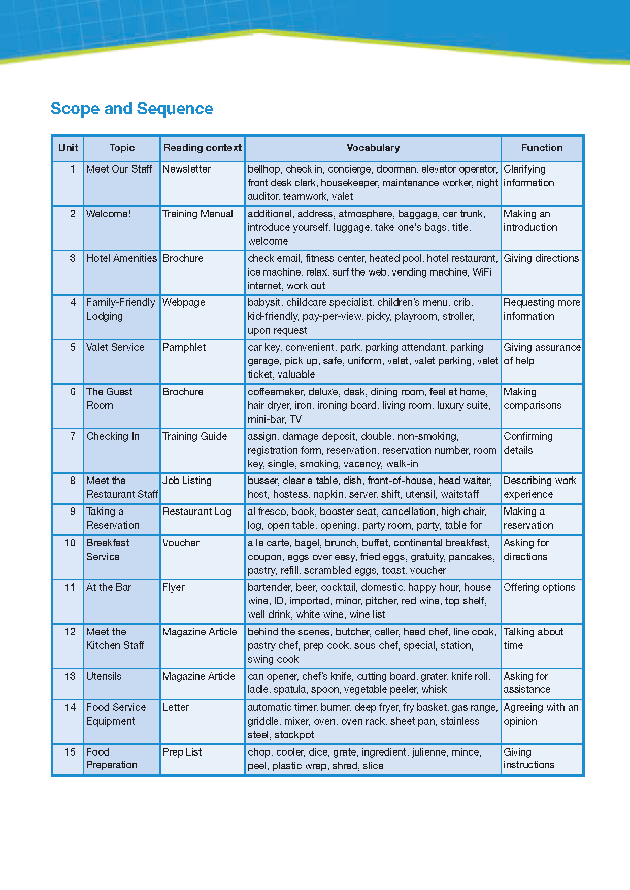 The series is organized into three levels of difficulty and offers over 400 vocabulary terms and phrases. Every unit includes a test of reading comprehension, vocabulary, and listening skills, and leads students through written and oral production.