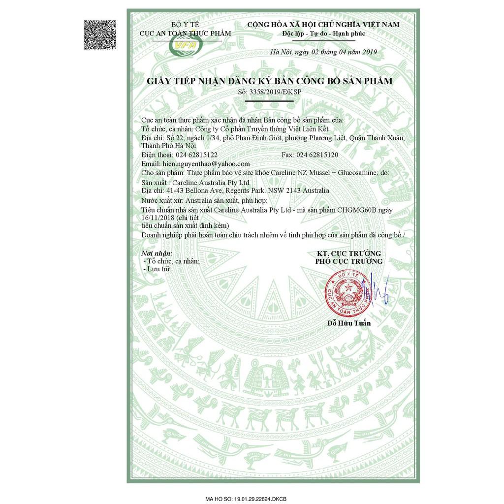 VIÊN UỐNG XƯƠNG KHỚP VẸM XANH CARELINE NZ GREEN MUSSEL + GLUCOSAMINE CÔNG DỤNG - Hỗ trợ tăng cường khả năng vận động của khớp. THÀNH PHẦN Mỗi viên nang mềm chứa: - Chiết xuất