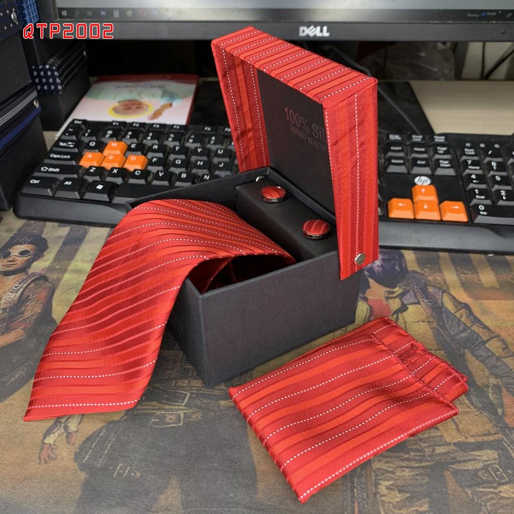 Cavat nam bản 8cm lót silk cao cấp nguyên hộp kèm khăn và khuy măng sét Giangpkc Qtp Sản phẩm cao cấp nguyên hộp quà tặng bản 8cm thích hợp cho trung niên - công