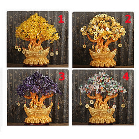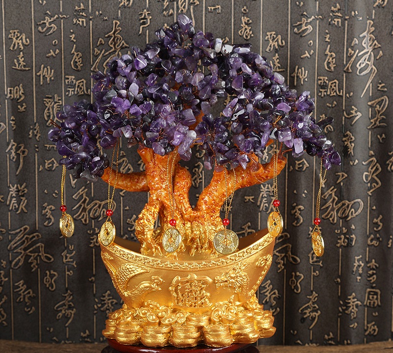 Hợp mệnh Hỏa - Thổ Chất liệu: Đá thạch anh tím Kích thước: Cao 30 cm Khối lượng: 1 kg Cây tài lộc là biểu tượng của sự sung túc, mang đến cát khí mạnh