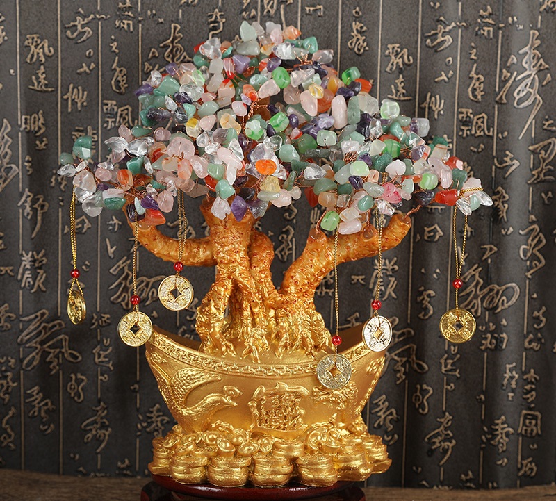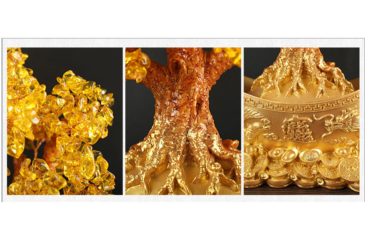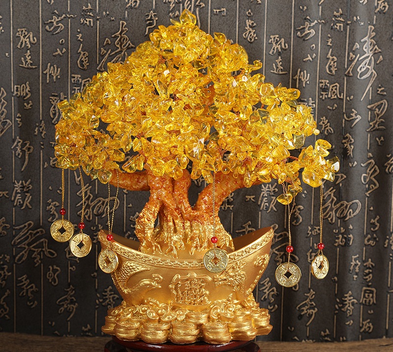 Hợp mệnh Thổ - Kim Chất liệu: Đá thạch anh vàng Kích thước: Dài 28 cm x Rộng 18 cm x Cao 40 cm Khối lượng: 3,8 kg Cây tài lộc là biểu tượng của