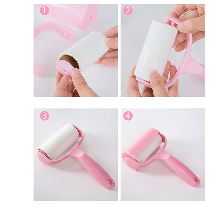 Cây lăn bụi siêu tiện dụng, Siêu nhỏ gọn với tay cầm chắc chắn. 1 set gồm 1 cây lăn & 3 lõi băng dính.
