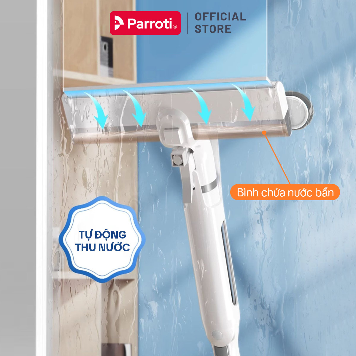 Cây lau kính, gạt chùi kính đa năng 4 trong 1,Có chức năng phun sương, gom được nước thừa trên kính - Parroti Shiny SN04 được thiết kế cực kỳ thông minh, thao tác đơn