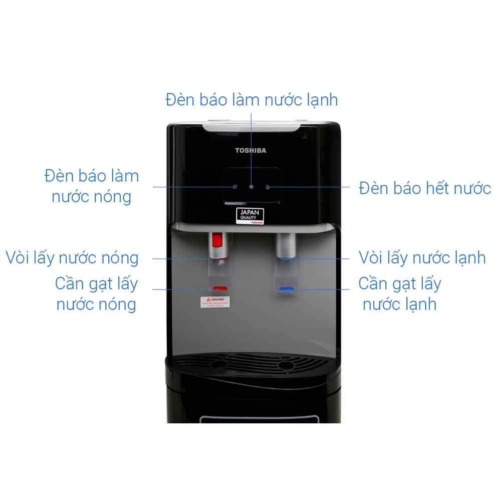 Kiểu dáng cây nước nóng lạnh Toshiba hiện đại, màu đen thanh lịch, kết cấu chắc chắn, tạo điểm nhấn cho không gian phòng khách, phòng làm việc, phòng bếp gia đình, công ty Nhiệt độ làm
