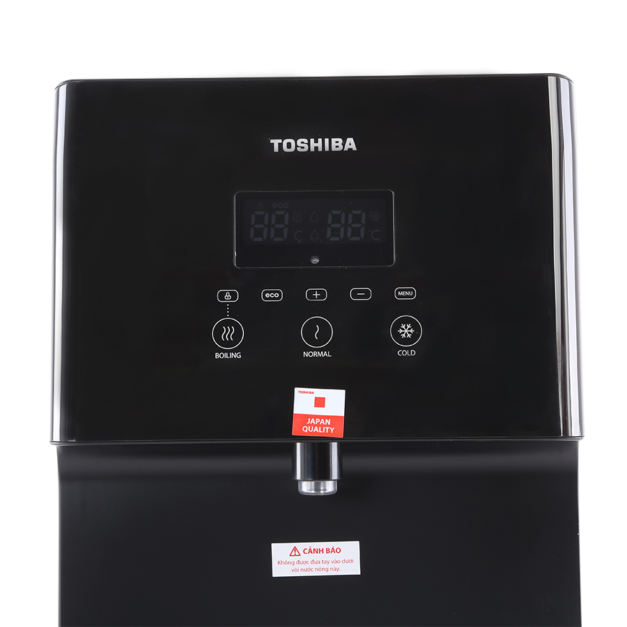 - ĐƯỢC KHUI THÙNG KIỂM TRA sản phẩm trước khi thanh toán/ký nhận Thiết kế hiện đại, sang trọng Cây Nước Nóng Lạnh Toshiba RWF-W1830BV(K) sở hữu thiết kế sang trọng phù hợp với mọi không gian hiện đại, cung cấp nguồn nước nóng - lạnh đạt chuẩn chất lượng, an toàn cho sức khỏe người tiêu dùng. Trang bị bình nước gắn dưới tiện dụng tháo lắp bình nước chuyên dụng dễ dàng hơn. Hệ thống làm lạnh thông minh Sản phẩm có hệ thống làm lạnh bằng máy nén cho độ làm lạnh sâu hơn, tiết kiệm điện hơn. Với nhiệt độ làm lạnh từ ≤ 10 độ C, công suất 100W, số lít làm lạnh 2.5 lít/giờ, đảm bảo luôn có nước mát lạnh cho bạn giải khát mọi lúc. Và nhiệt độ làm nóng 85 đến 95 độ C, công suất 550W, số lít làm nóng 4 lít/giờ, cung cấp đủ nước nóng cho bạn pha trà, chế mì, pha sữa… tiện lợi. Chất liệu cao cấp Sản phẩm có bình chứa bằng inox 304 thiết kế liền khối có độ bền cao, an toàn cho sức khỏe, thân thiện và không gây mùi khó chịu. Vỏ máy làm bằng nhựa ABS không phai màu, siêu bền, có khả năng chịu va đập, đặc biệt có thể chịu được nhiệt độ cao mà không gây ra phản ứng hóa học ảnh hưởng đến chất lượng nguồn nước. Bảng điều khiển điện tử Bảng điều khiển nút nhấn điện tử với 3 chế độ cấp nước: nước thông thường, nước nóng và lạnh với nhiệt độ nước nóng đạt 85 – 95 độ C và nhiệt độ nước lạnh 5 – 10 độ C. Màn hình led báo nhiệt độ nước trong bình, tiện lợi khi cần sử dụng. Công tắc nước nóng và nước lạnh độc lập để người dùng chủ động hơn trong nhu cầu sử dụng thiết bị, thêm an toàn, thêm tiết kiệm điện. Vòi nước nóng thiết kế khóa an toàn Đặc biệt, khi khóa được kích hoạt, trẻ nhỏ có táy máy bấm vào vòi, nước nóng cũng không chảy ra ngoài gây nguy hiểm cho chúng, giúp đảm bảo an toàn cho gia đình bạn hiệu quả. Cùng với khoảng cách giữa vòi và khay đựng nước đã được thiết kế hợp lý có tính toán khiến bạn dễ dàng lấy nước khi sử dụng cốc cao hay bình đựng cá nhân.