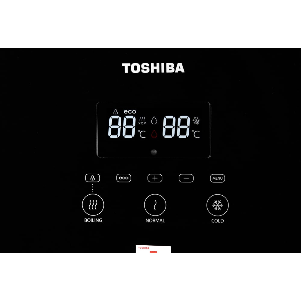 Kiểu dáng cây nước nóng lạnh Toshiba hiện đại, màu đen thanh lịch, kết cấu chắc chắn, tạo điểm nhấn cho không gian phòng khách, phòng làm việc, phòng bếp gia đình, công ty Nhiệt độ làm