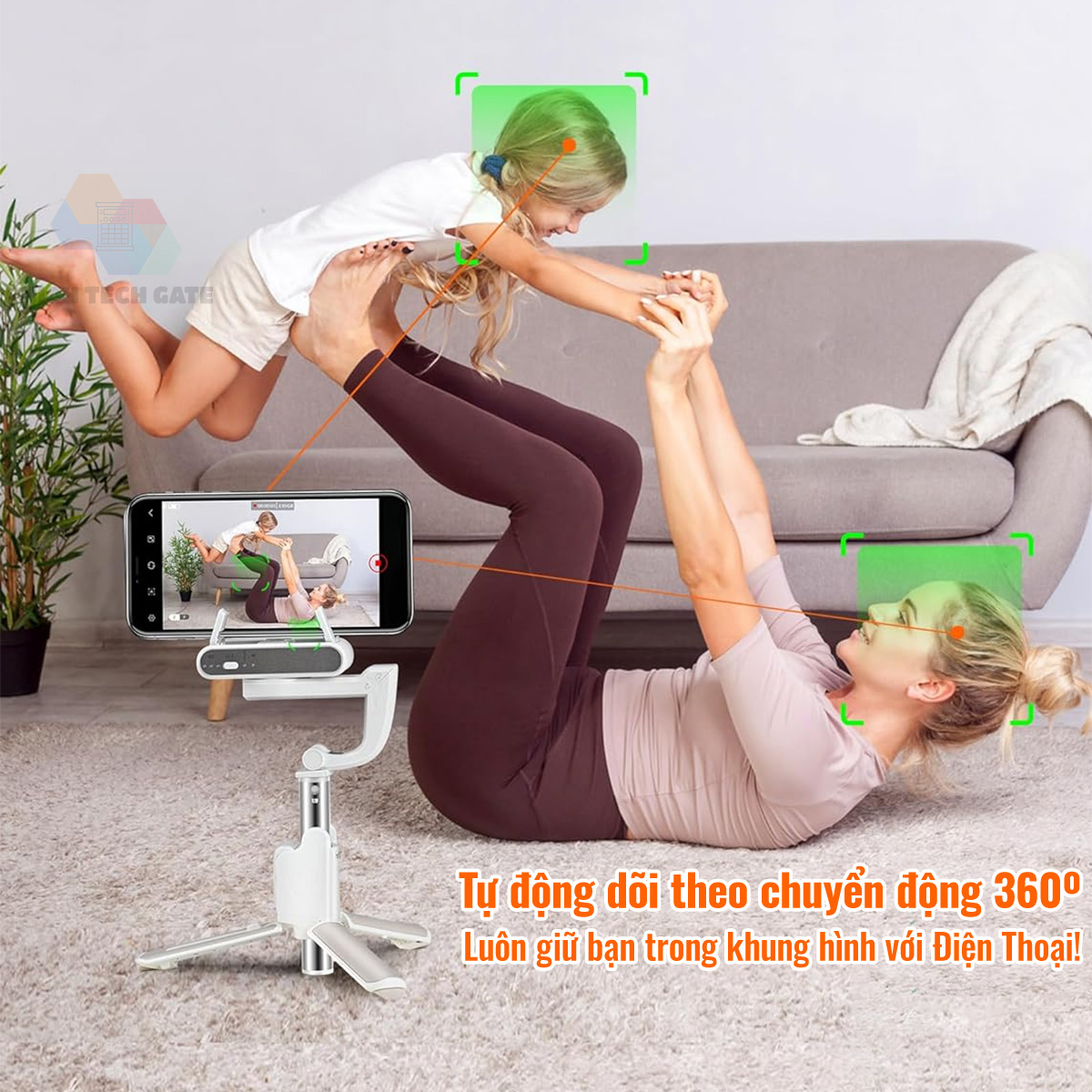 Gimbal cầm tay Điện Thoại để bàn P01 thông minh theo dõi Xoay 360 độ Lưu ý: Tặng kèm chân TRIPOD 1m7* Sản phẩm này không cần dùng app, chỉ cần bật lên chờ 3s