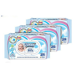 ✨CB 3 gói KHĂN ƯỚT BOBBY KHÔNG MÙI 100 Miếng