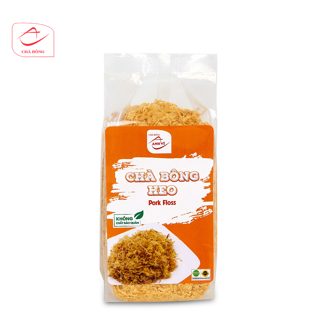 Chà bông heo Nguyên Chất Anh Vĩ Đặc Điểm Nổi Bật Của Chà Bông Anh Vĩ • Nguyên Liệu Tươi Ngon: Chà bông Anh Vĩ được sản xuất từ thịt tươi, chọn lọc kỹ càng