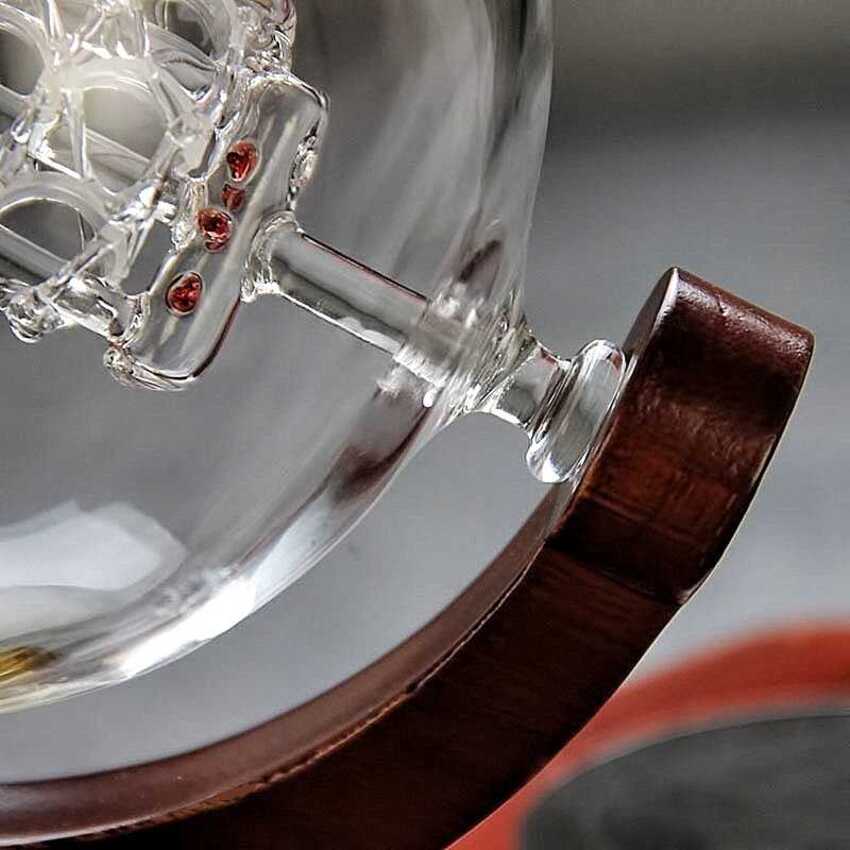 Mua tại TiktokChai Đựng Rượu Thủy Tinh 1500ML mẫu globe cao cấp nắp thủy tinh đặc kèm đế gỗ Vỏ Chai Rượu Đẹp trang trí – Bình Đựng Rượu Thủy Tinh decor (E18) Glass bottle 1500ml – Globe design – with wood base (E18 pattern)
