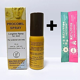 - Bình xịt Procomil có dạng xịt phun sương chứa thành phần Lidocaine giúp nam giới chống xuất tin sớm, kéo dài thời gian quan hệ hiệu quả. Sản phẩm có xuất xứ từ Đức, với hàm lượng Lidocaine Base 10g nên mỗi lần sử dụng các anh chỉ cần xịt một lượng nhỏ là đủ.- Procomil có dung tích 15ml tương đương khoảng 100 lần xịt, xét về giá thành sẽ giúp tiết kiệm hơn cho các anh so với một số sản phẩm có hàm lượng nhẹ hơn, thể tích nhỏ hơn.