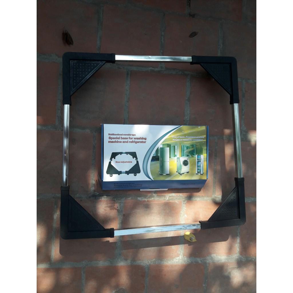 Chân đế có thể thay đổi được cả chiều dài và chiều rộng từ 42-56cm tùy theo kích thước máy giặt, tủ lạnh.