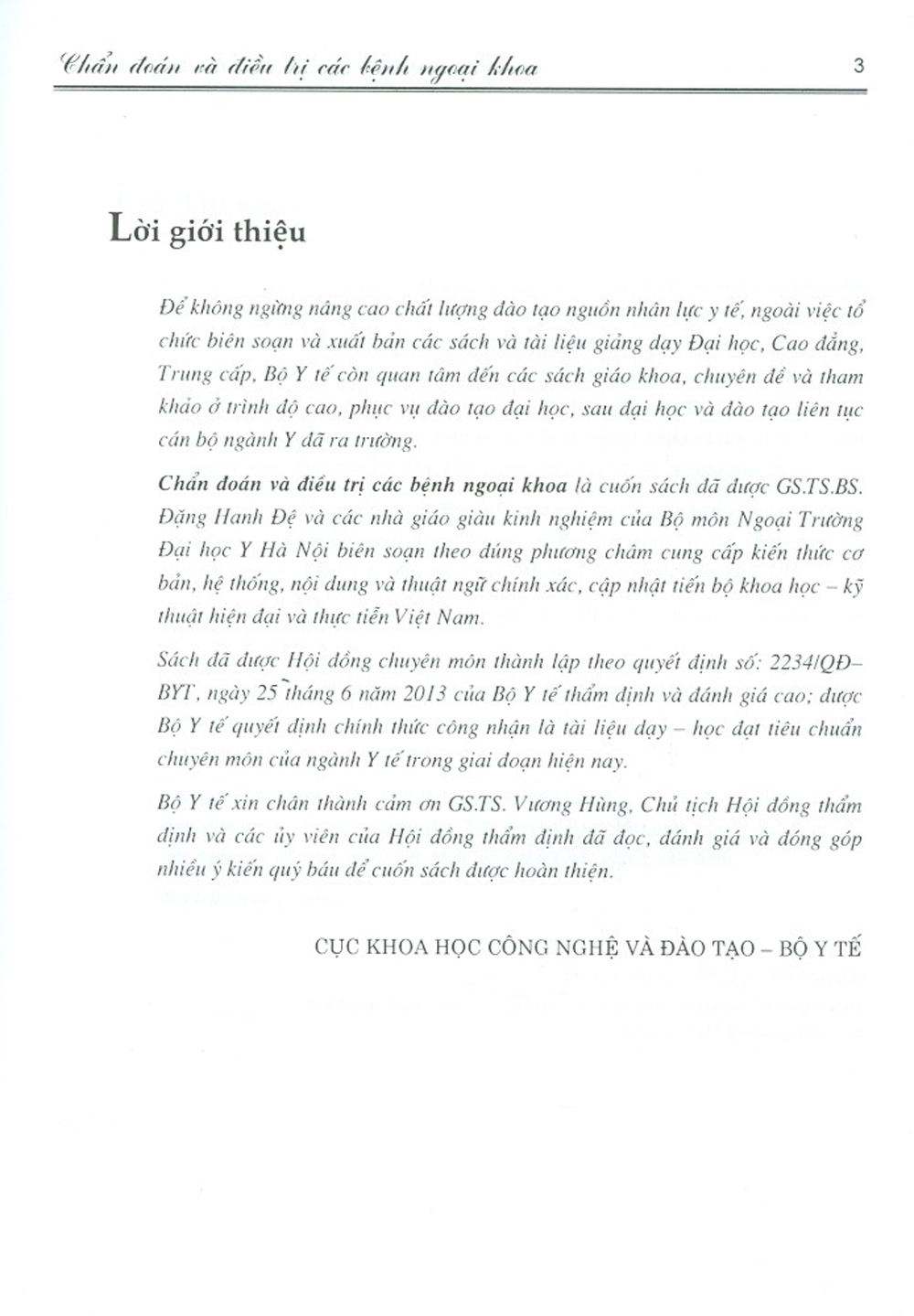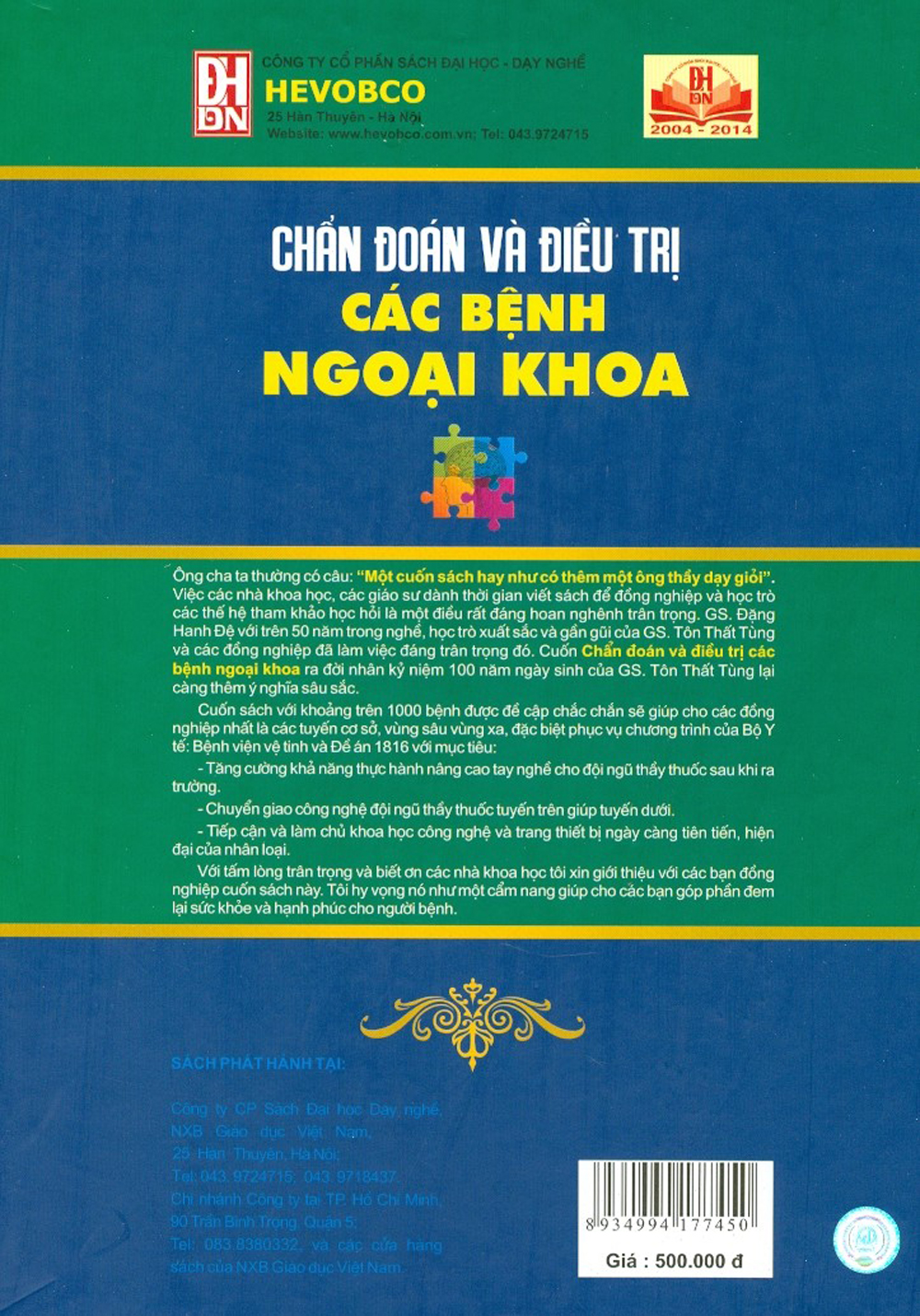 Chẩn đoán và điều trị các bệnh ngoại khoa là cuốn sách đã được Tác giả GS. BS. Đặng Hanh Đệ ( chủ biên),cùng 27 tiến sĩ, thạc sĩ, PGS, BS các khoa Phẫu thuật tạo hình- hàm mặt, Khoa phẫu thuật tiêu hóa, khoa chấn thương chỉnh hình, Khoa gây mê hồi sức, Khoa phẫu thuật gan, Khoa phẫu thuật tiết niệu, Khoa phẫu thuật cấp cứu tiêu hóa, khoa phẫu thuật tim mạch và lồng ngực Bệnh BỆNH VIỆN VIỆT ĐỨC lời giới thiệu, cuốn sách Chẩn đoán và ĐT các bệnh ngoại khoa là cuốn sách đã dược GS. BS Đặng Hanh Đệ cùng các nhà giáo giàu kinh nghiệm của bộ môn ngoại Trường ĐH Y HN biên soạn theo đúng phương châm cung cấp kiến thức cơ bản, hệ thống, nội dung và thuật ngữ chính xác, cập nhật tiến bộ khoa học- kỹ thuật hiện đại của Việt Nam. Chẩn Đoán Và Điều Trị Các Bệnh Ngoại Khoa Cuốn sách với khoảng trên 1.000 bệnh được đề cập chắc chắn sẽ giúp cho các đồng nghiệp, nhất là ở các tuyến cơ sở, vùng sâu vùng xa tăng cường khả năng thực hành nâng tao cay nghê; chuyển giao công nghệ của đội ngũ thầy thuốc tuyến trên giúp tuyến dưới….