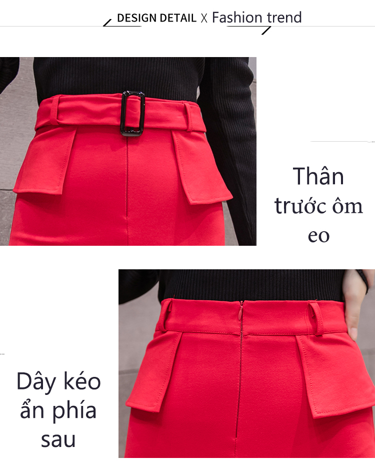 - Chân váy thíêt kê dạng lưng cao phôí thêm petlum tạo điểm nhấn cá tính sang trọng thanh lịch
