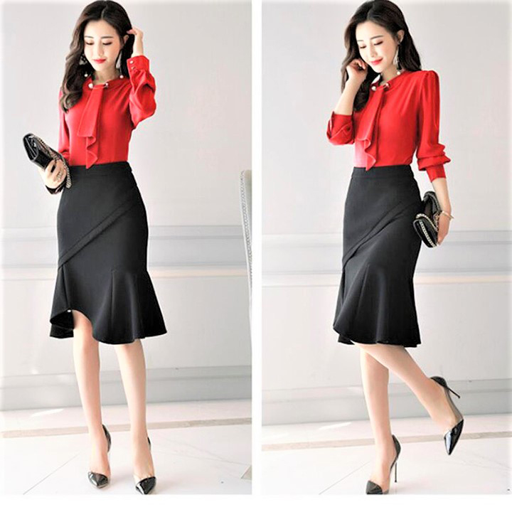 - Chân váy lưng cao phom ôm phần mông rất tôn dáng.