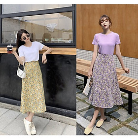 Chân váy hoa xòe dài qua gối thích hợp mặc công sở, dạo phố - Với thiết kế chân váy midi trên nền hoa nhí tinh tế, thích hợp mặc đi làm, dự tiệc hoặc cafe cùng bạn bè. Kiểu dáng basic kết hợp chiều dài qua gối, tạo điểm nhấn cho người mặc, mang đến nét đẹp sang trọng và quyến rũ