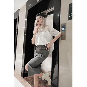 Set bộ - Áo kiểu chân váy tay hến hoa 3D - Xám trắng