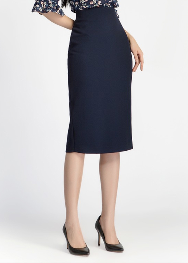 ✨Chân Váy Midi Xẻ Sau De Leah - Xanh Dương Đen