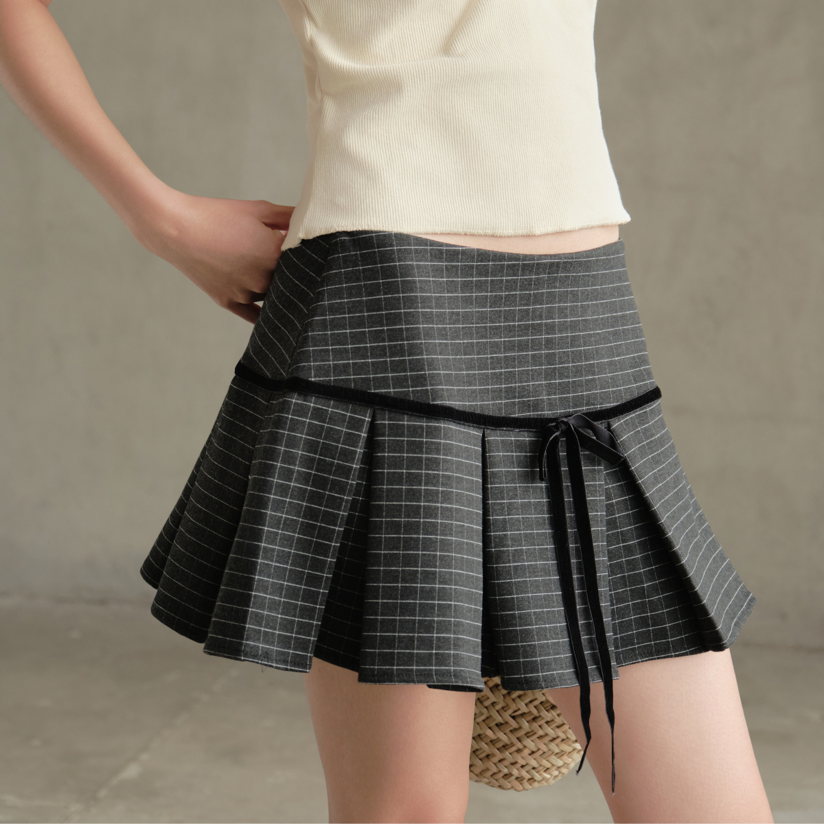 Chân váy xếp li dáng ngắn kẻ sọc caro siêu xinh