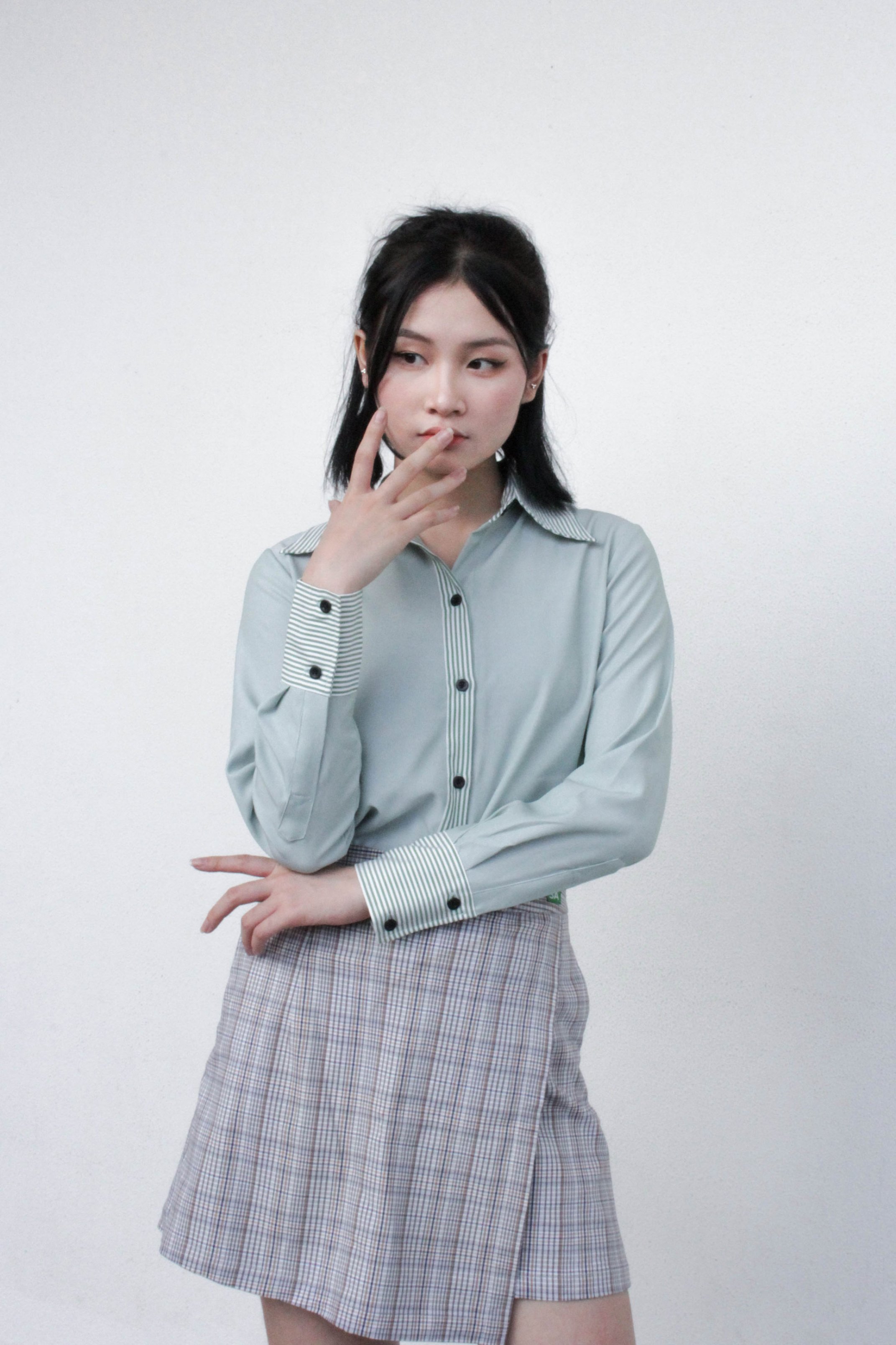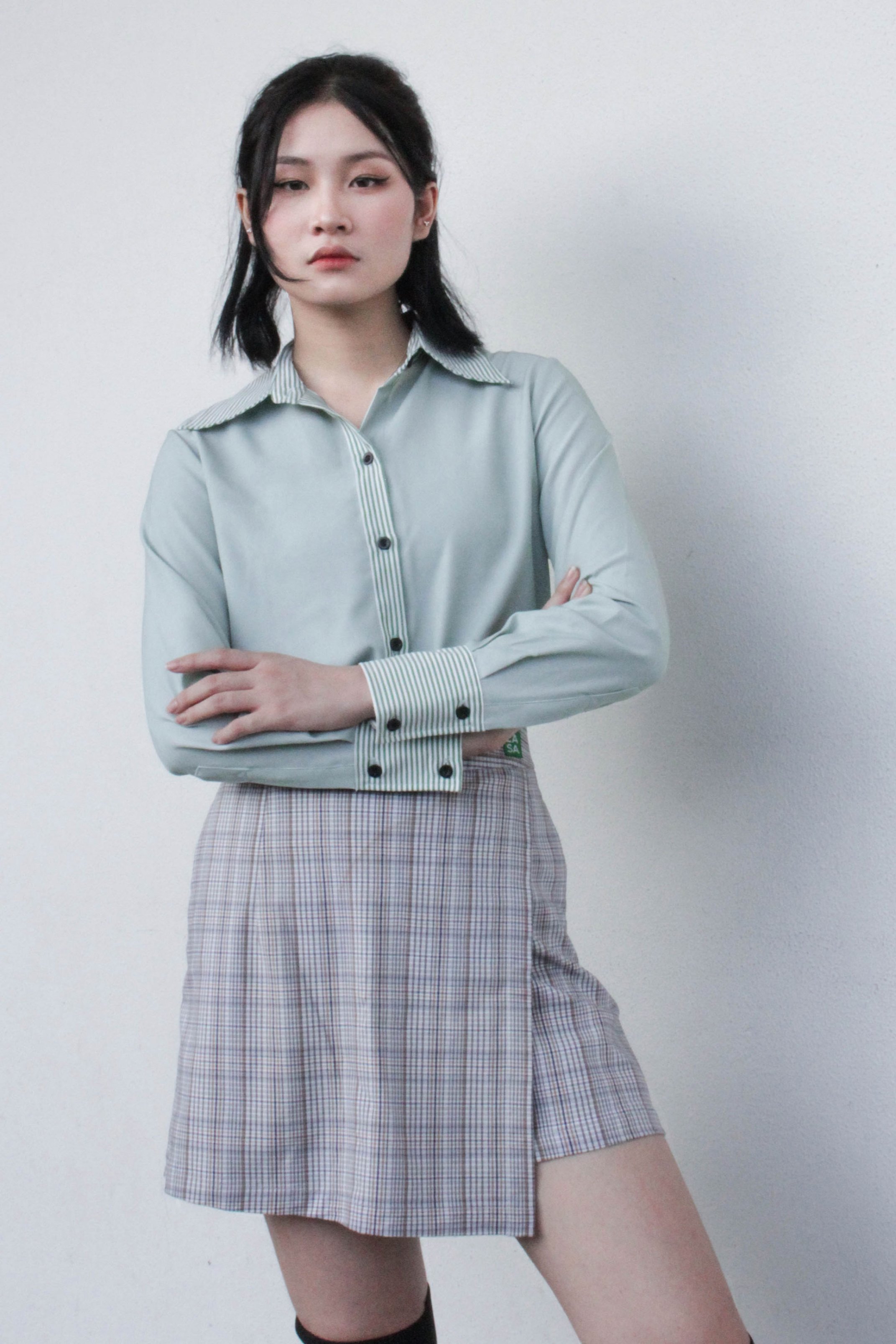 Phối đồ với chân váy xếp ly màu xám #thoitrang #tips #fashion #outfitideas #shorts