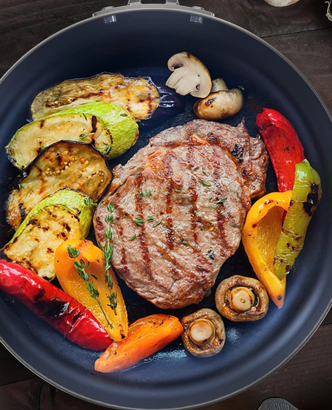 + Tổng quan: Các cạnh bên thấp giúp bạn dễ dàng sử dụng thìa hoặc các dụng cụ nhà bếp khác trong khi nấu ăn hoặc đảo thức ăn cũng như đổ thức ăn trực