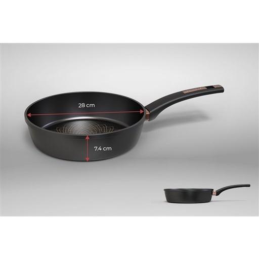 Chảo chống dính Ultra titanium Sunhouse ST28B được thiết kế đẹp mắt với mặt ngoài màu đen nhũ sang trọng và tinh tế, có khả năng hạn chế trầy xước và bám bẩn. Thiết kế chảo lửng với các đường bo tròn không chỉ tạo ngoại quan cân đối mà còn tiện lợi cho việc thao tác khi nấu nướng, hạn chế thức ăn bám vào viền đáy chảo.