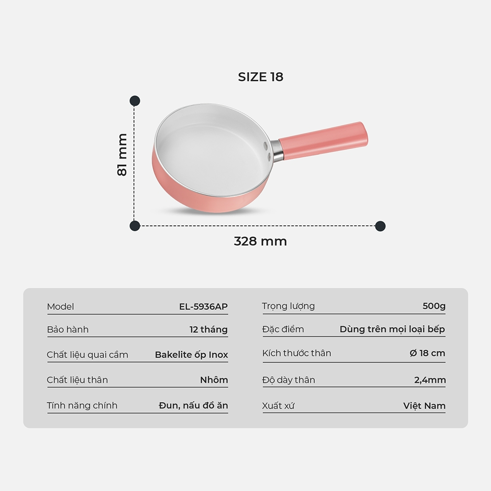 Chảo Elmich | CHẢO NHÔM CHỐNG DÍNH AN TOÀN ELMICH BABY EL 5936AP: CUỐN HÚT TỪ THIẾT KẾ TỚI TÍNH NĂNG