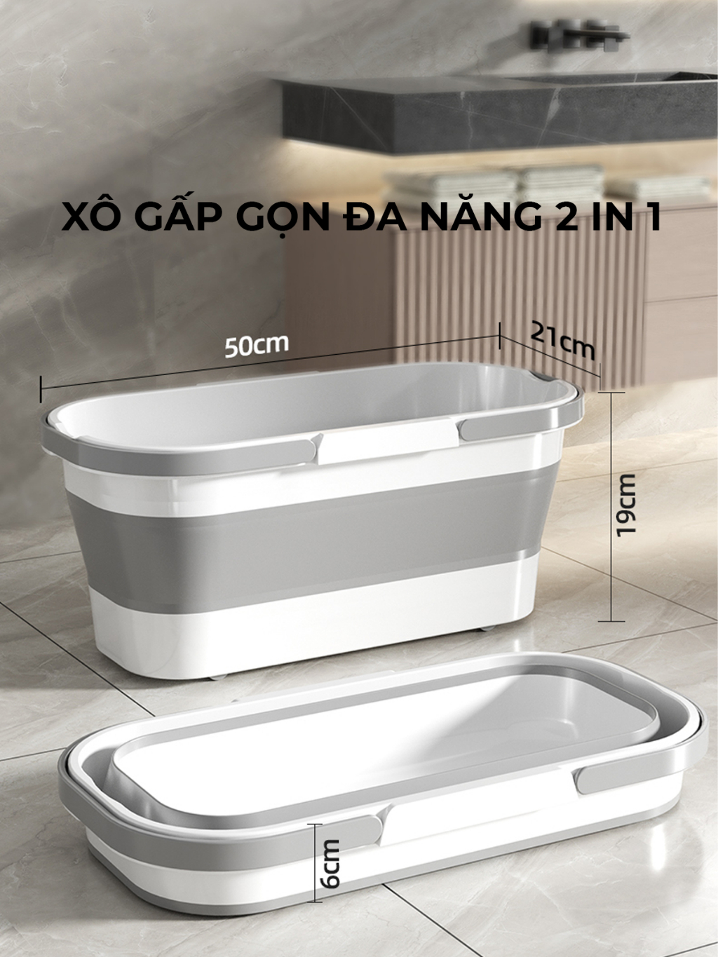 Đặc điểm nổi bật: - Thau thiết kế đặc biệt có thể gấp gọn lại và cất gọn gàng mà không chiếm nhiều diện tích khi không sử dụng. - Màu sắc: xanh dương nhạt và
