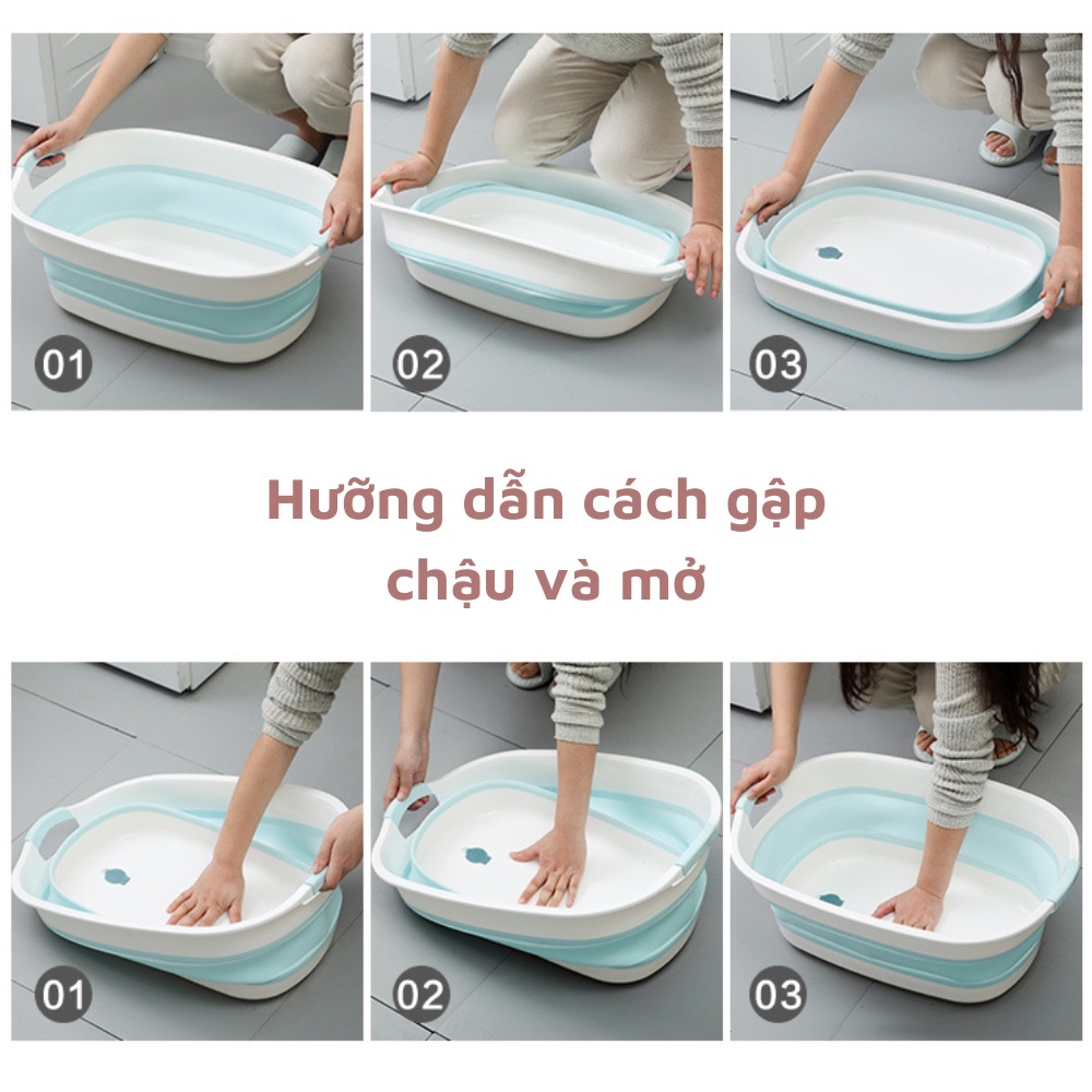 ✨Chậu giặt quần áo silicon gấp gọn (thau giặt quần áo) có lỗ thoát nước Cao Cấp Chính Hãng