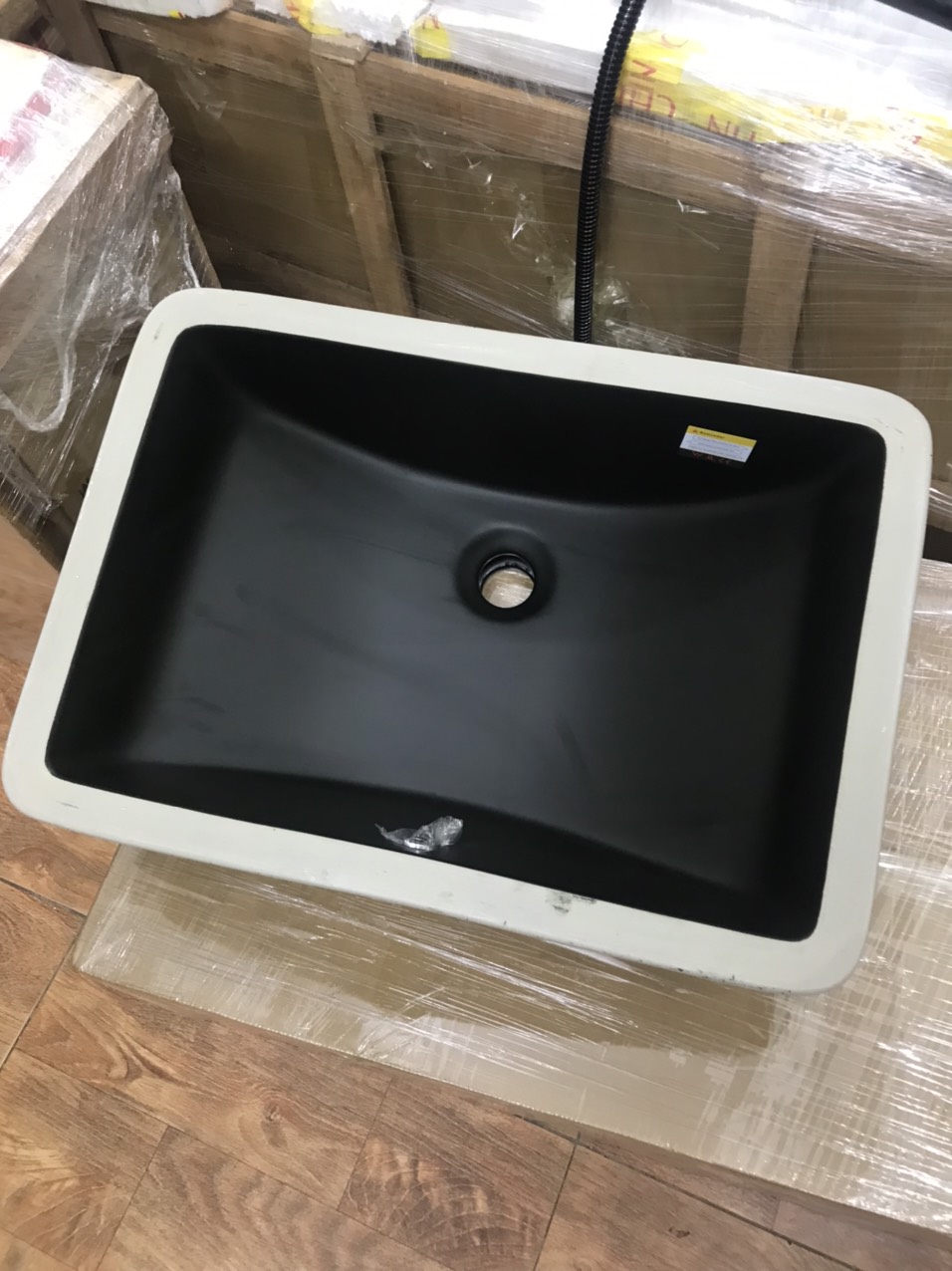 ✨Chậu Lavabo, chậu rửa mặt âm bàn men đen tuyền GRL groves 1803D, KT: 52x37 cm, đẹp sang trọng huyền bí